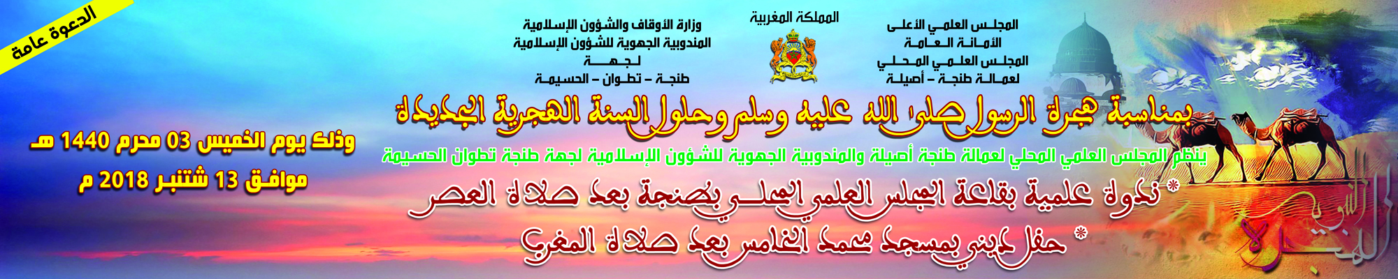 بمناسبة الشهر الفضيل شهر رمضان الأبرك لعام 1439 ه يتشرف المجلس العلمي المحلي لعمالة طنجة – أصيلة وبشراكة مع كل من : ☆ مندوبية الشؤون الإسلامية لجهة طنجة تطوان الحسيمة .☆ مؤسسة محمد السادس للنهوض بالأعمال الإجتماعية للقييمين الدينيين .برنامج الأنشطة كالتالي :1- مسابقات طنجة الكبرى2- أمسيات 3- الأنشطة العلمية والثقافية4- الأنشطة…