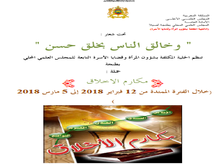 في إطار أنشطته العلمية والثقافية ينظم المجلس العلمي المحلي لعمالة طنجة ـ أصيلة " الخلية المكلفة بشؤون المرأة وقضايا الأسرة حفل الاختتام لبرنامج ربيع النور لعام 1439