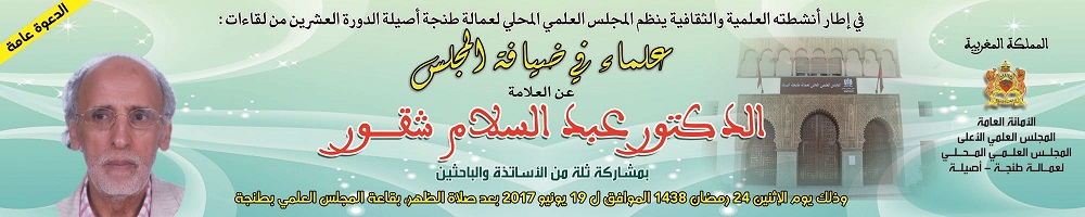 في إطار أنشطته العلمية والثقافية ينظم المجلس العلمي المحلي لعمالة طنجة ـ أصيلة بتنسيق مع الزاوية التليدية بمرشان ملتقى تأبينيا للعلامة المرحوم " سيدي عبد الله التليدي "