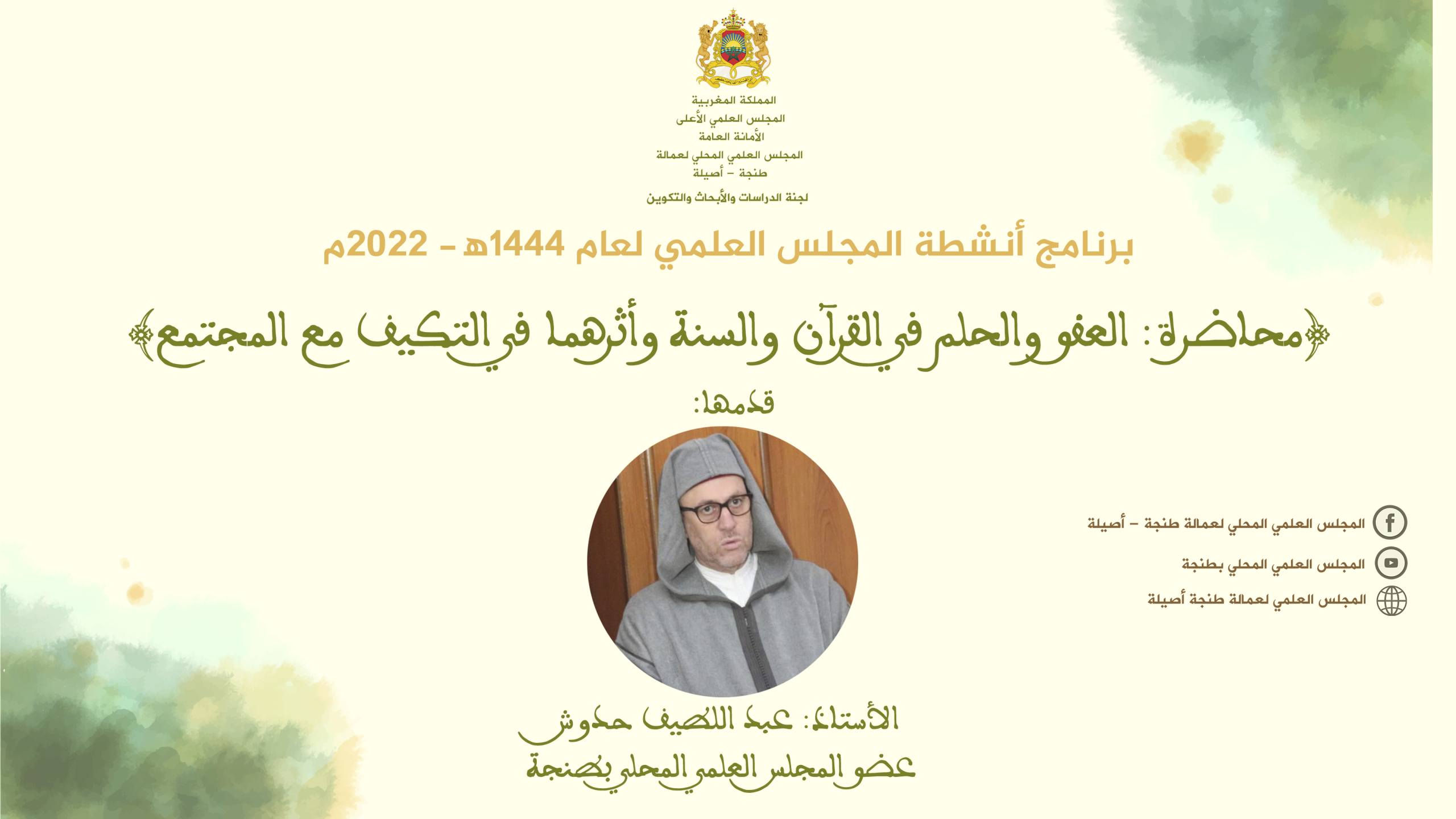 محاضرة: العفو والحلم في القرآن والسنة وأثرهما في التكيف مع المجتمع للأستاذ عبد اللطيف حوش عضو المجلس العلمي