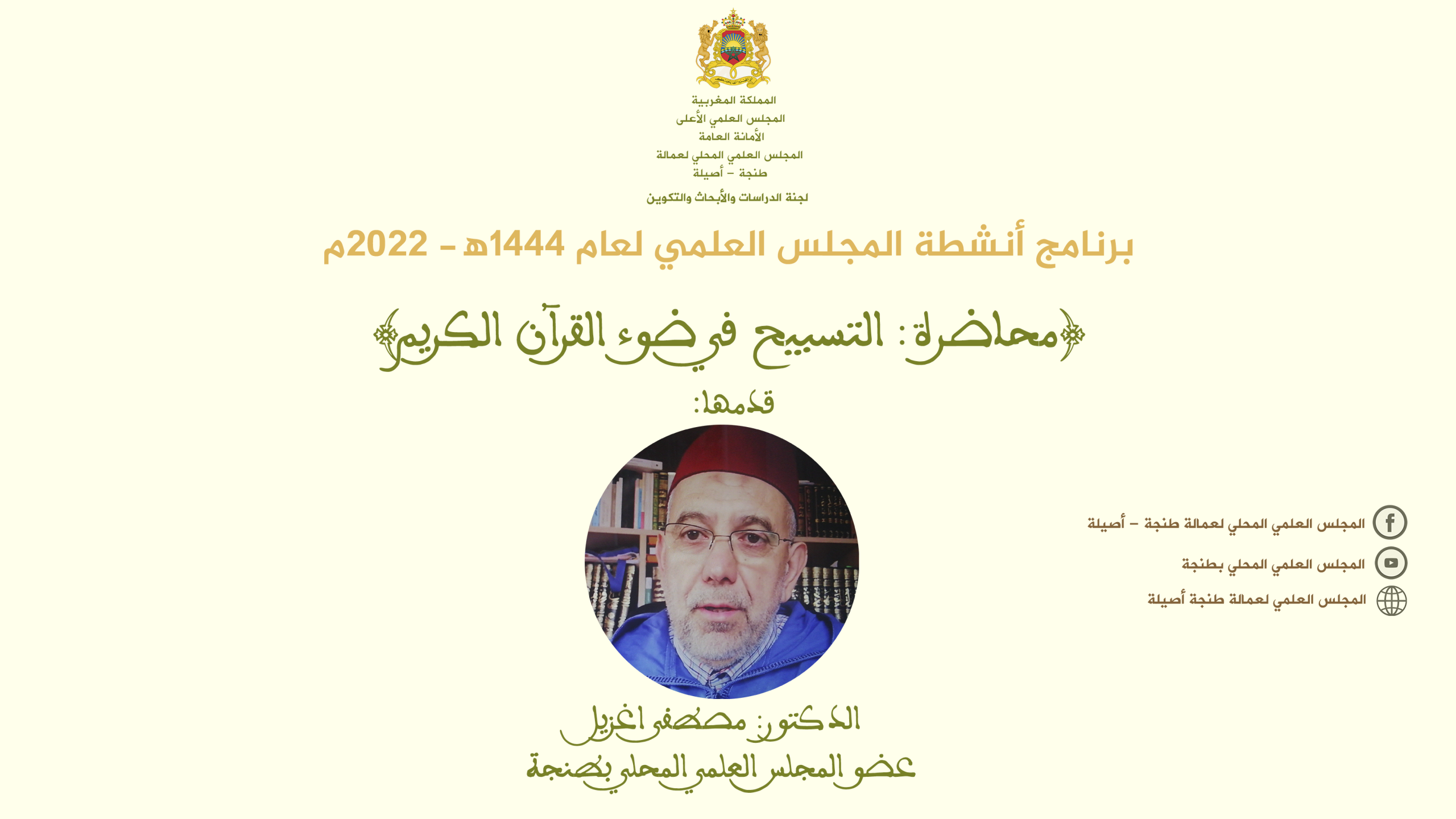 محاضرة: “الإخبات في القرآن الكريم” للأستاذ علي السعيدي عضو المجلس العلمي