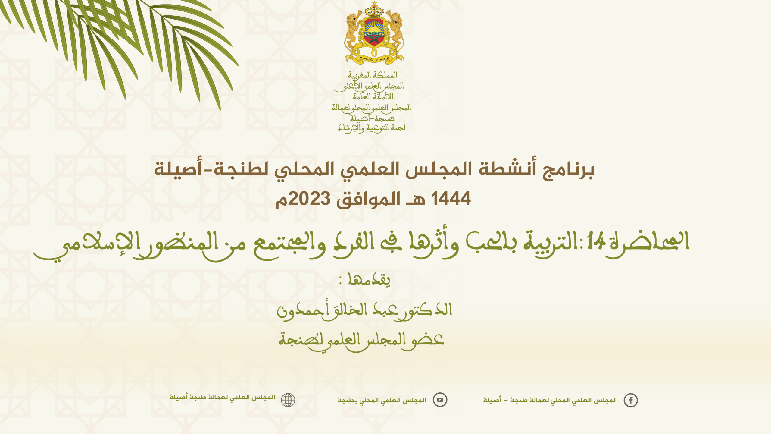 في إطار الأنشطة العلمية والدينية التي ينظمها المجلس العلمي المحلي لعمالة طنجة أصيلة يقدم الاستاذ محمد الرغيوي درسا في موضوع: “أحكام الوضوء” بمسجد الأندلس فبراير 21, 2023 مناهضة العنف ضد المرأة بين الواقع و المأمول Read More